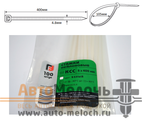 Размеры стяжки: L-400мм W-4.8мм D-105мм