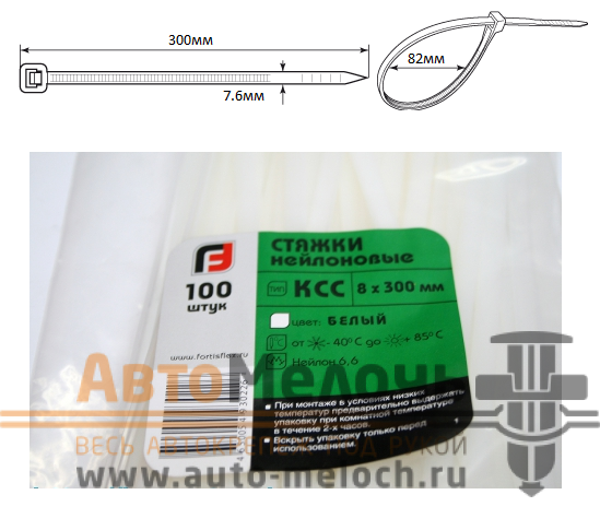 Размеры стяжки: L-300мм W-7.6мм D-82мм