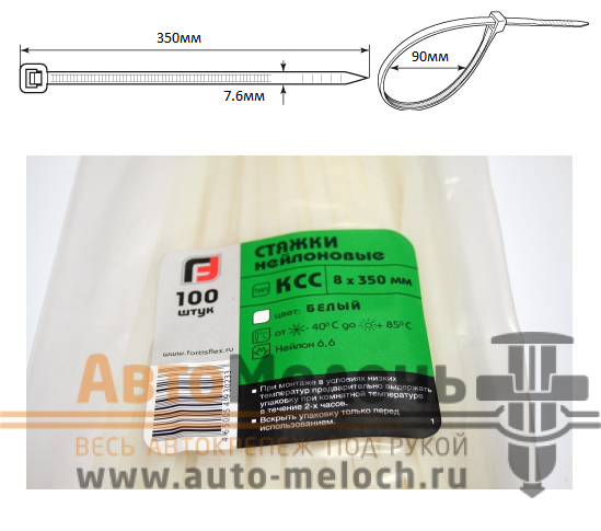 Размеры стяжки: L-350мм W-7.6мм D-90мм